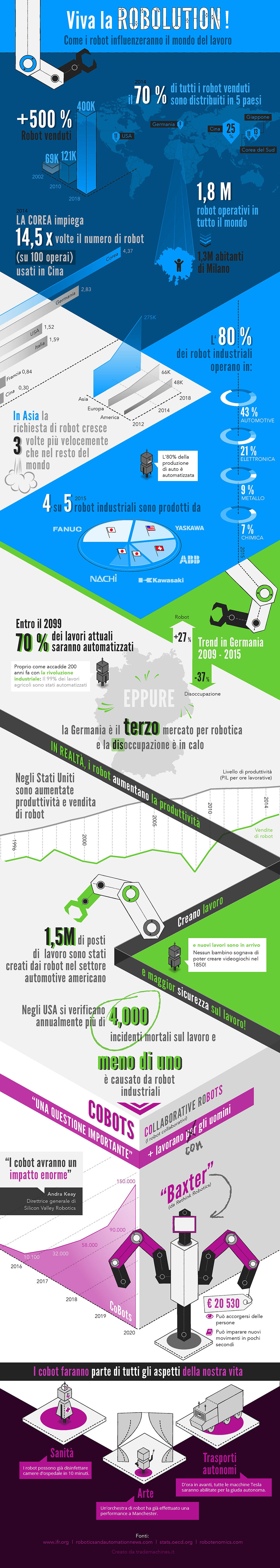 Una bellissima infografica realizzata da una startup tedesca che si occupa di aste online macchinari industriali, TradeMachine, racchiude alcuni fondamentali della “robolution”!