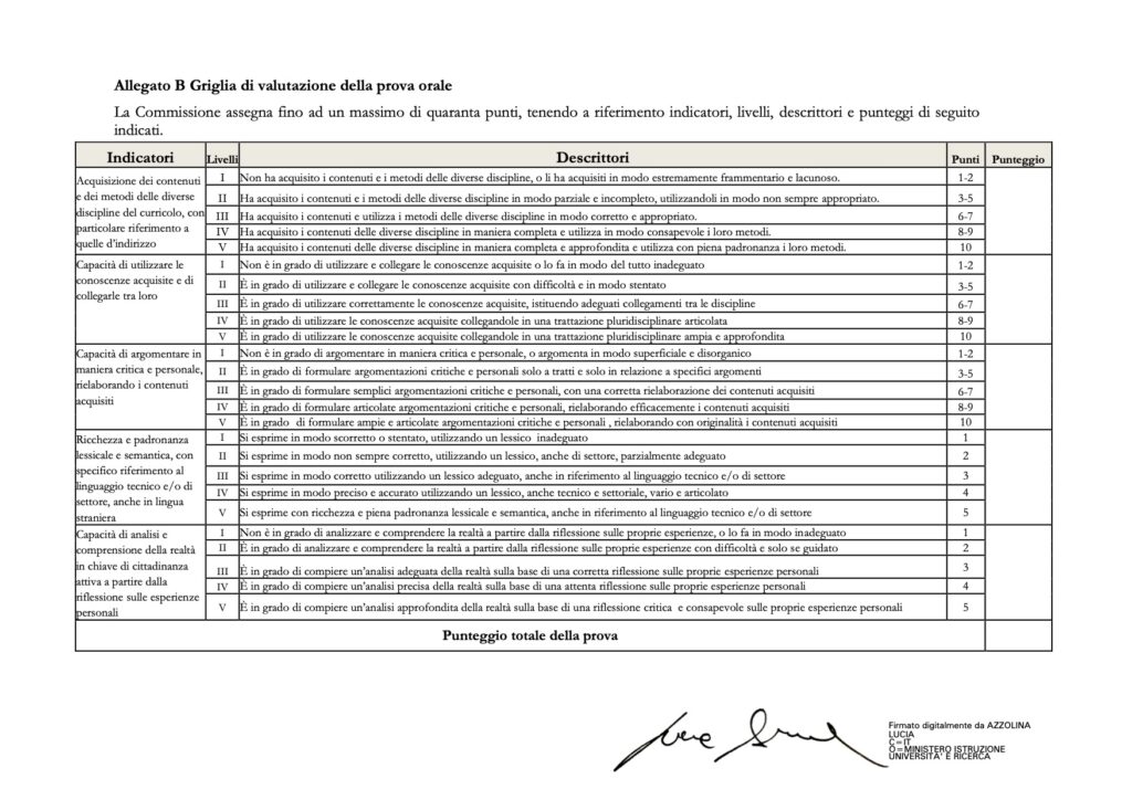 La griglia di valutazione della prova orale che puoi anche scaricare dal link