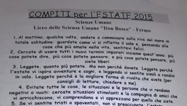 Leggi la lettera consegnata agli studenti a questo link http://www.huffingtonpost.it/2015/06/08/compiti-vacanze-prof_n_7533582.html